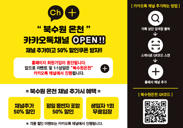평일 동반자 포함 50%나 생일자 무료 입장등 할인 혜택이 있으니 방문하시기 전에 채널 추가를 하고 혜택 받아보세요!