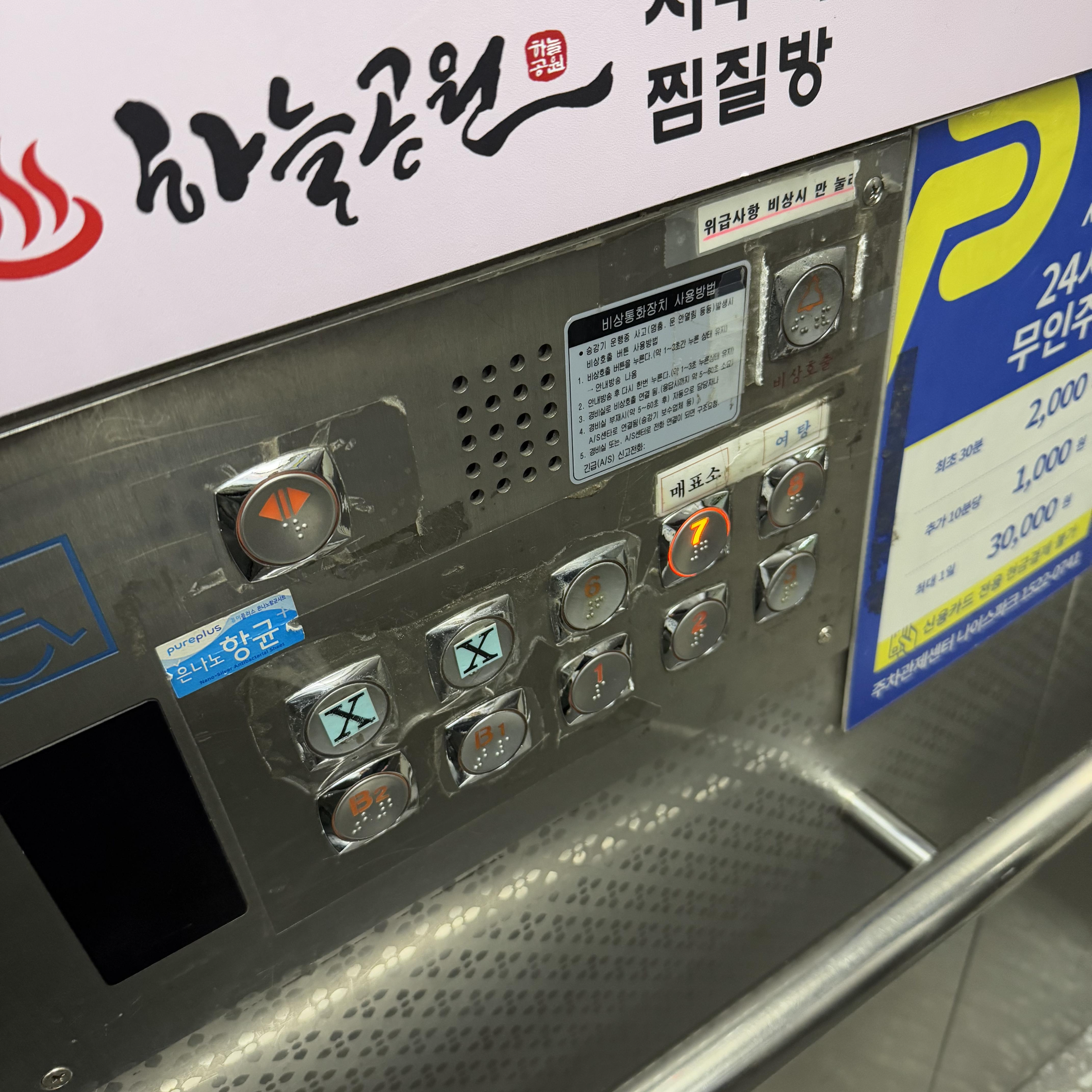 사우나 매표소는 7층이니 주차를 하셨다면 7층으로 가시면 돼요.