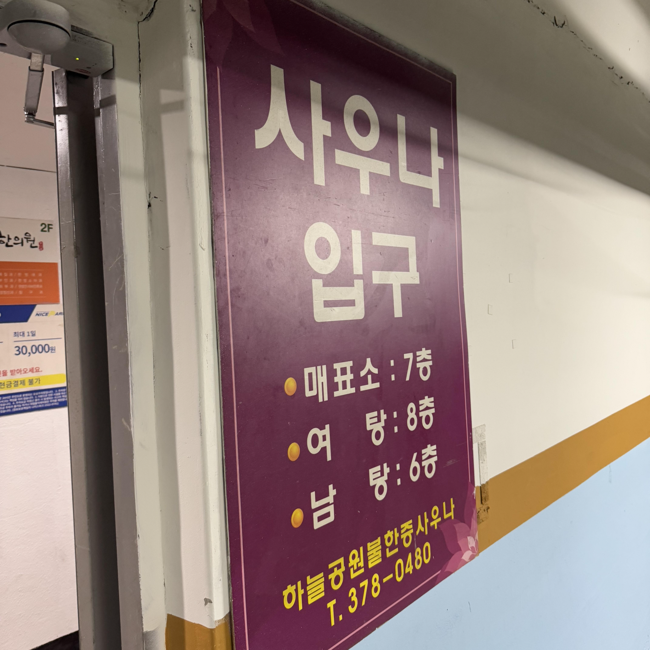 사우나 매표소는 7층이니 주차를 하셨다면 7층으로 가시면 돼요.
