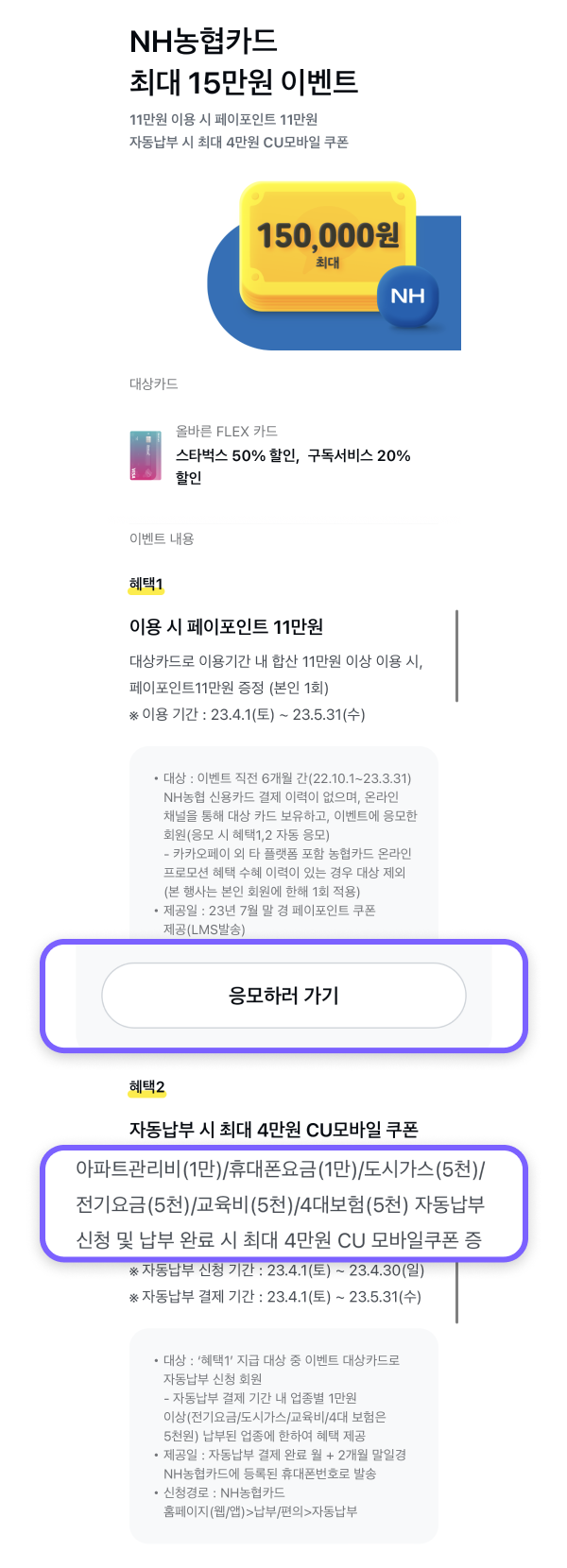 자동납부는 제가 신청한 이벤트와 같은 내용인 것 같네요