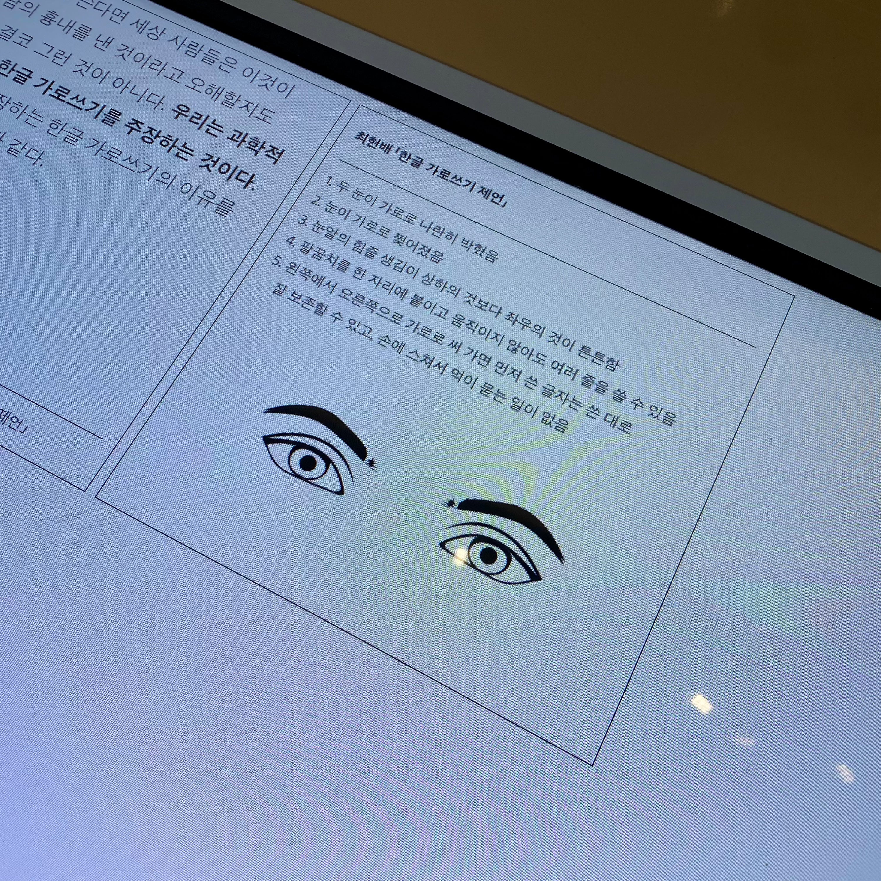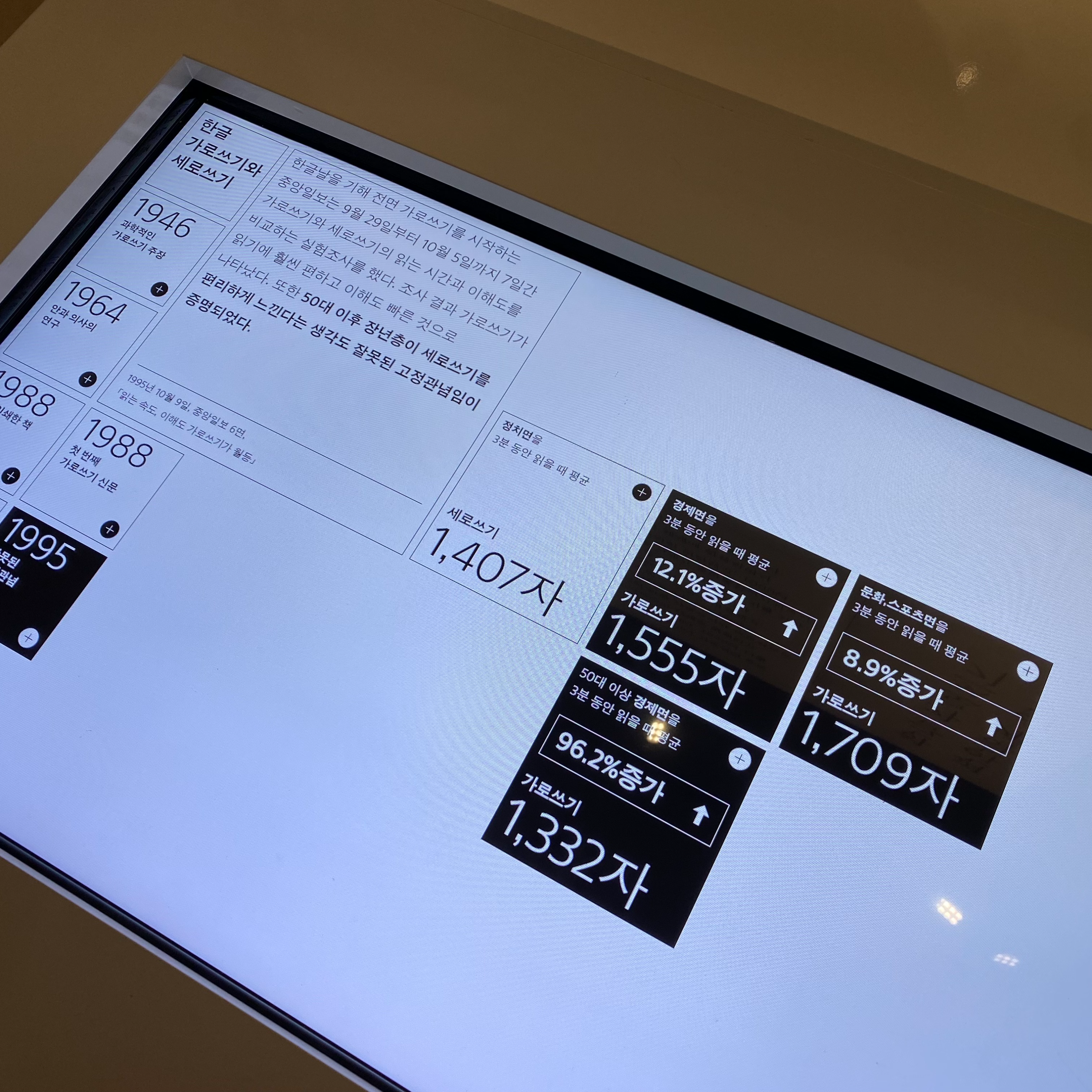 들어가자마자 스크린미디어로 우리 삶 속의 한글을 보여주고요