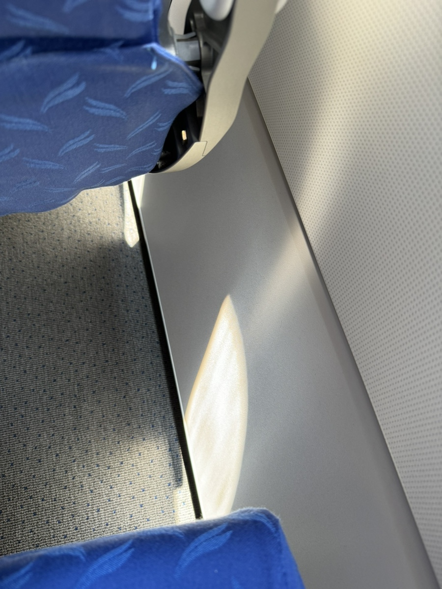 LCC(저가항공)지만 무릎이 닿지 않고, 다리도 편하게 펼 수 있었답니다. 특히 의자 아래에 USB 포트도 있어서, 핸드폰 충전까지 가능했어요. 다만 포트 위치가 너무 아래에 있어 고개를 숙여야 하는 건 좀 불편했어요. 그래도 짧은 1시간 비행이니 괜찮았답니다.
