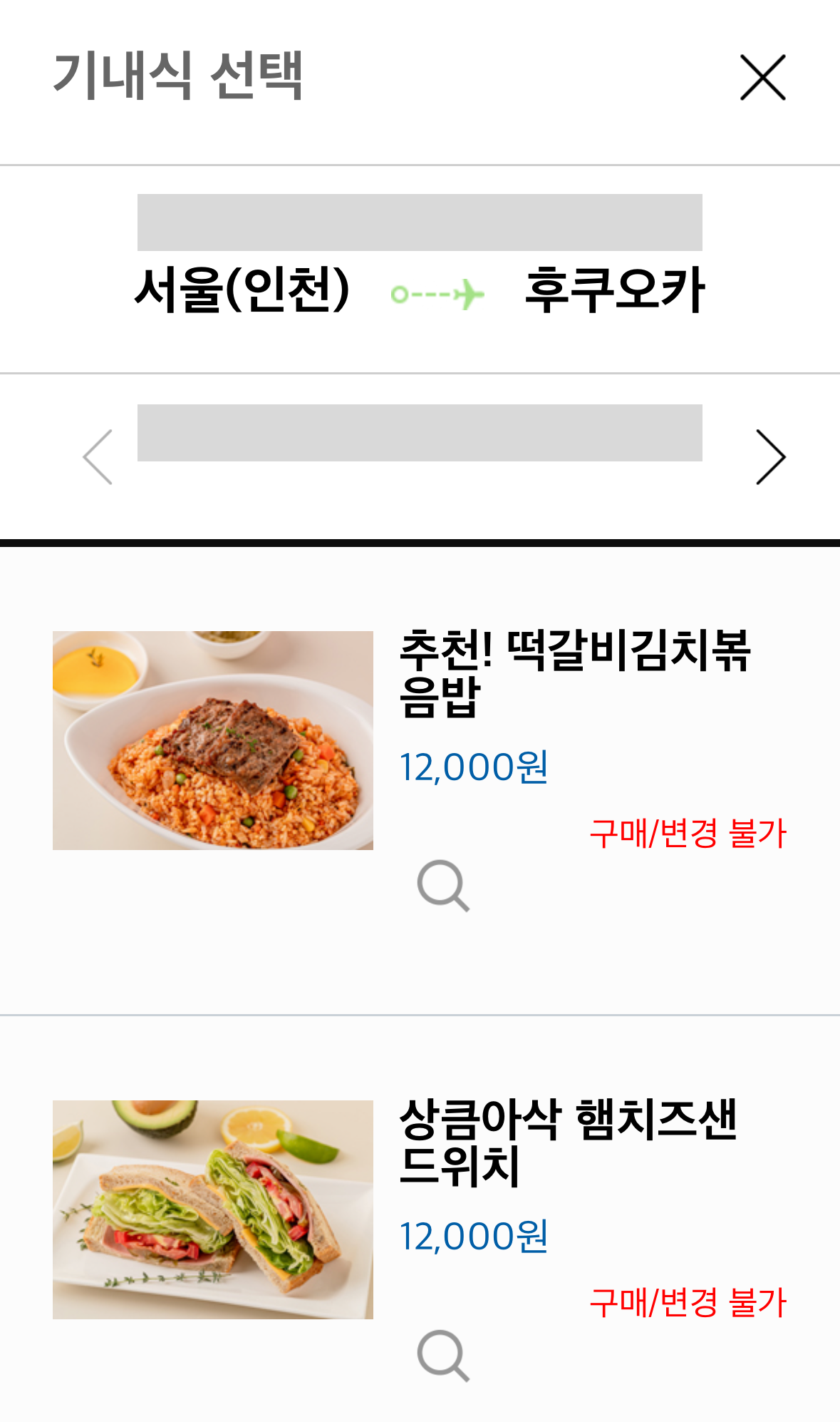 인천-후쿠오카 노선은 약 1시간 20분 정도로 짧기 때문에 대부분의 승객이 기내식을 따로 구매하지는 않더라구요.
