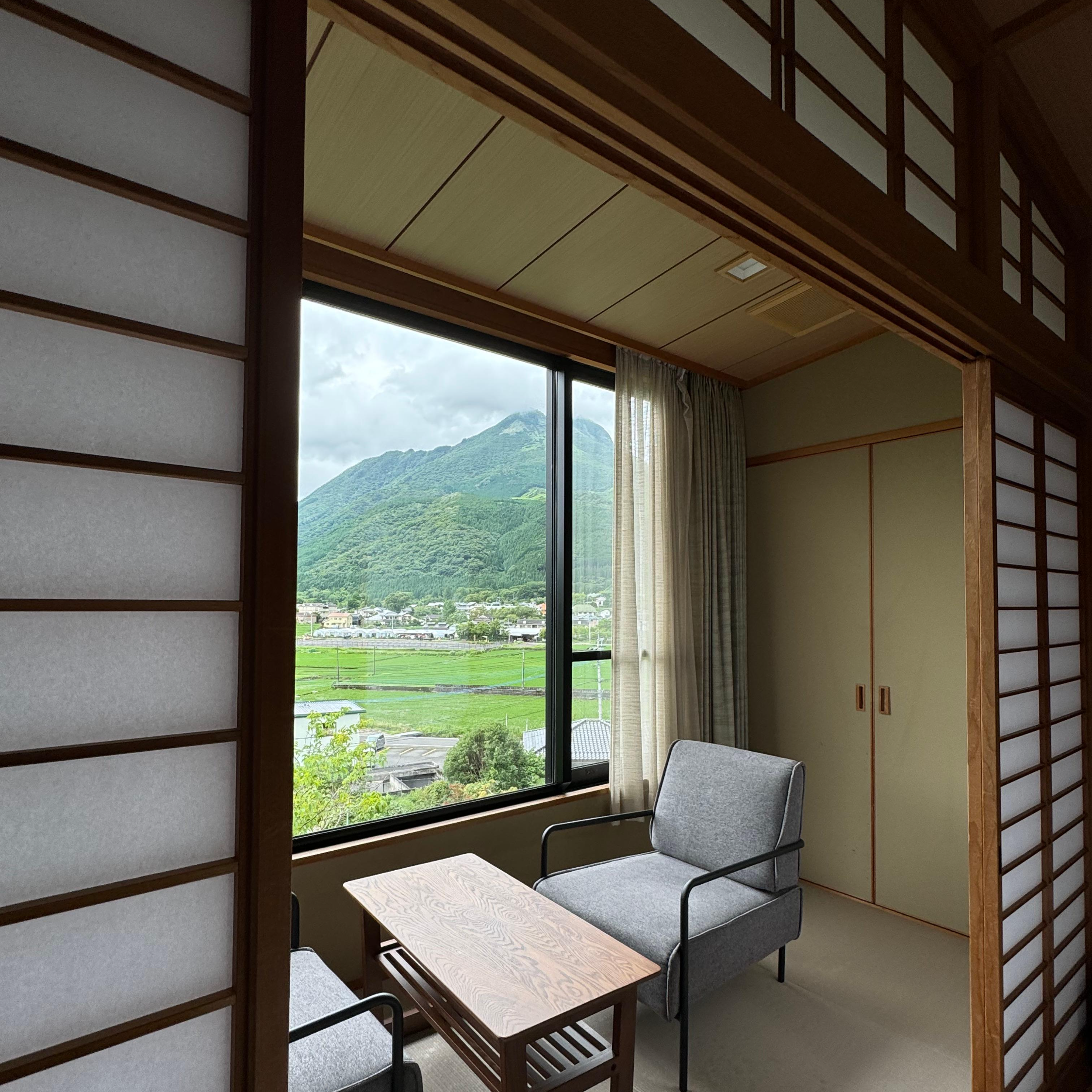 창가 자리에서 유후인의 풍경을 보며 식사할 수 있었어요.