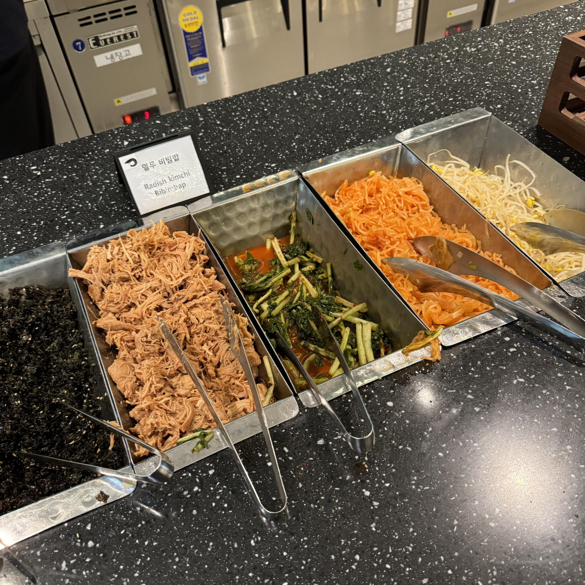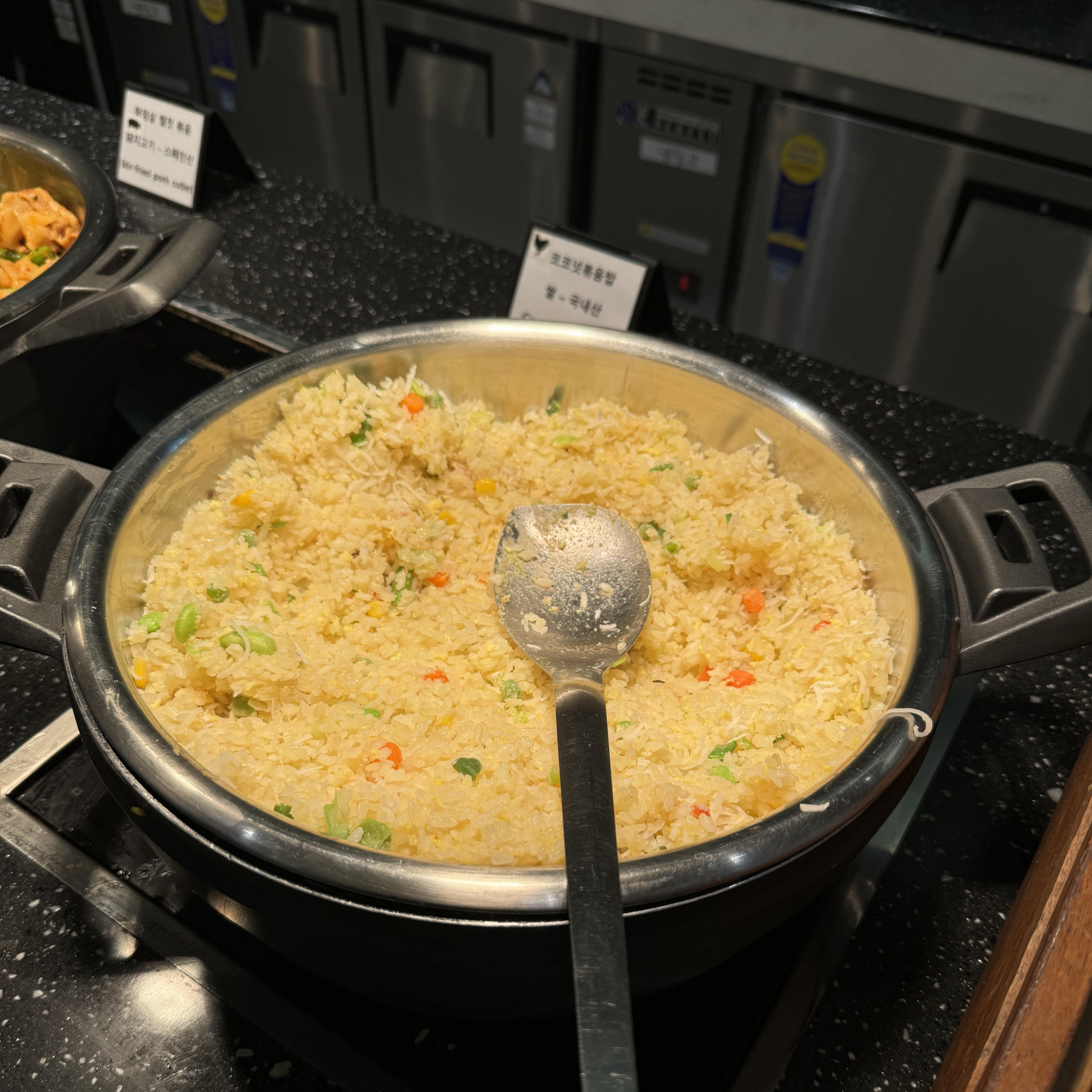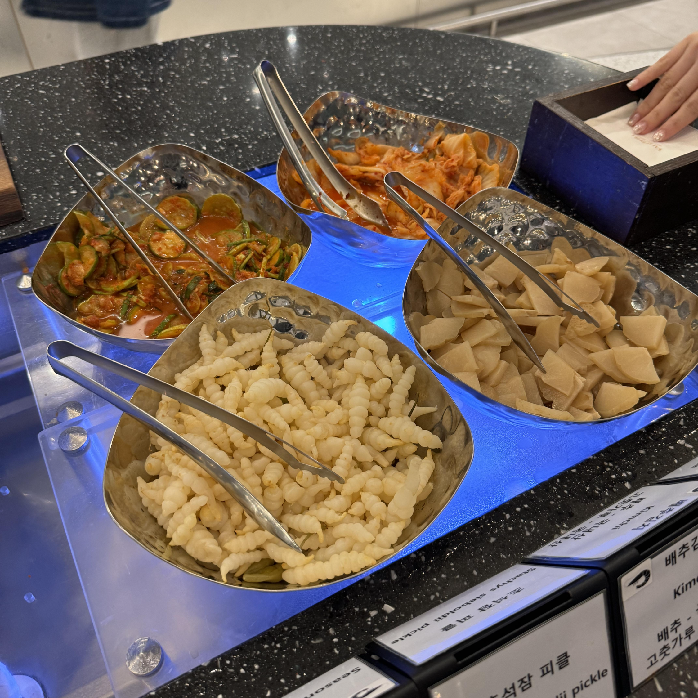 음식은 샐러드, 김치, 비빔밥 같은 한식부터 다양한 고기 요리, 디저트까지 다양하게 준비되어 있었어요. 특히 신선한 야채가 많아서 건강하게 한 끼를 해결할 수 있었답니다. 저는 디저트를 좋아해서 기본적인 빵과 케이크를 맛봤는데요, 아주 맛있다기보다는 여러 가지를 조금씩 즐길 수 있다는 점에서 만족스러웠어요.