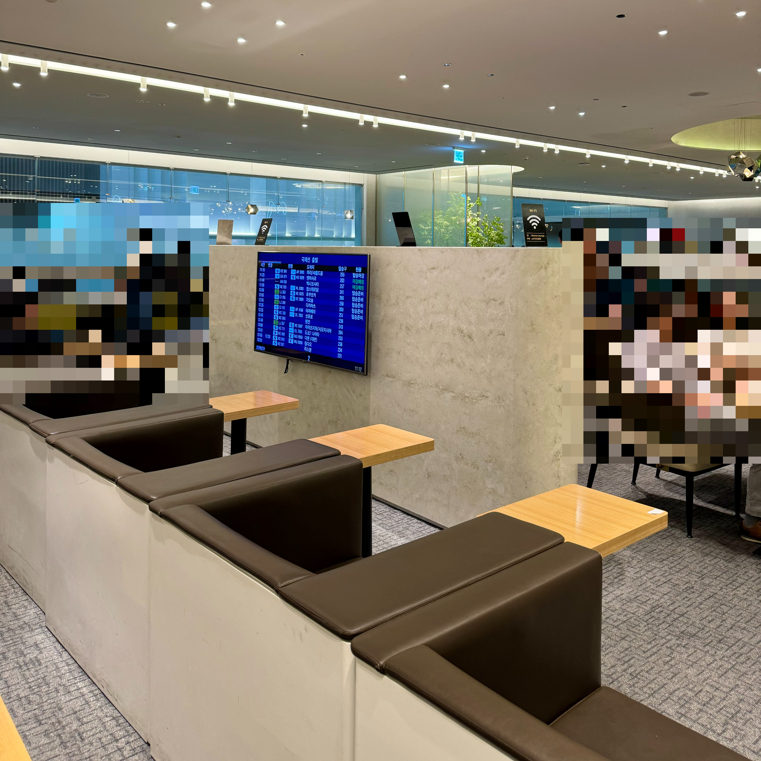 마티나 라운지는 인천공항 2터미널 251번 게이트 맞은편에 있어요. 주말 오전 11시에 방문했는데, 줄이 조금 길었지만 회전율이 빨라서 약 10분만 대기했어요. 내부는 꽤 넓고 다양한 형태의 좌석이 준비되어 있어요.