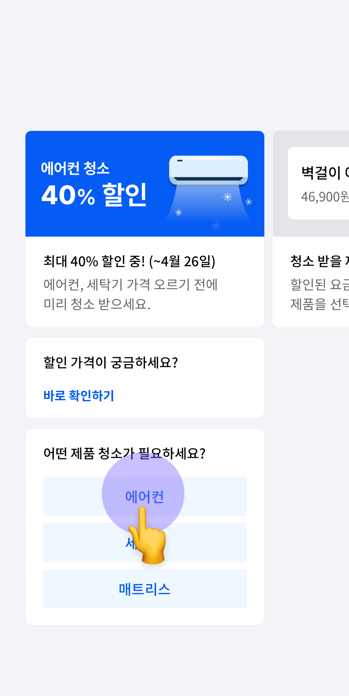 미소라는 어플에 에어컨/세탁기 청소 카테고리가 있어요