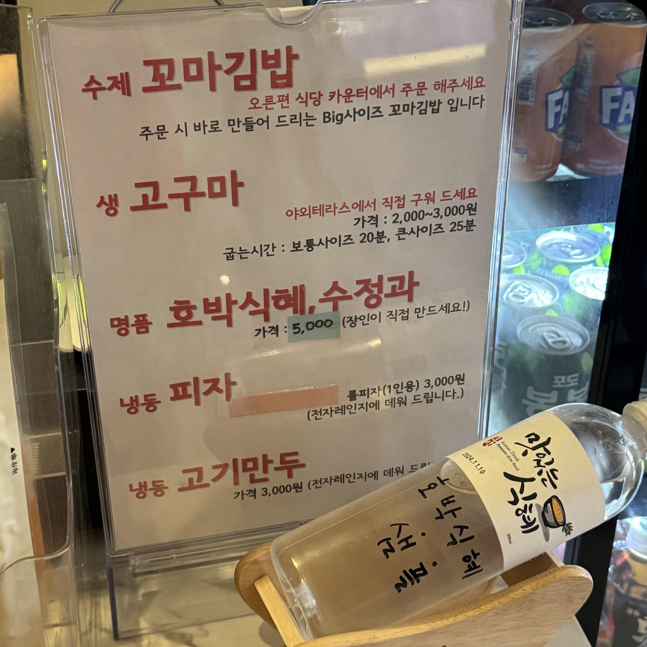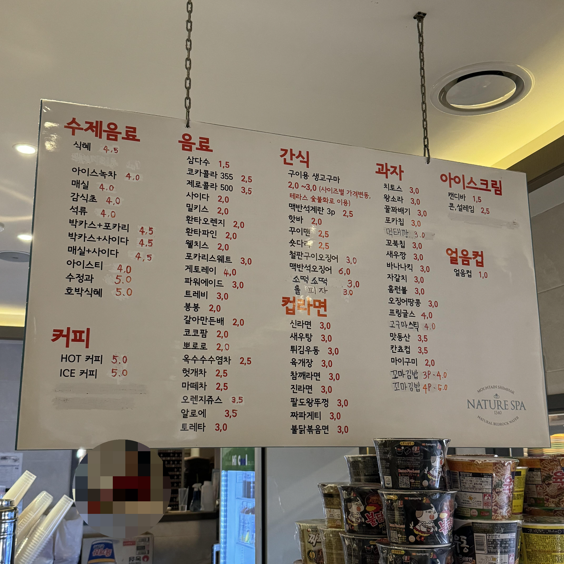 입장료가 꽤 비싼 편이었는데, 식당 가격은 다른 찜질방과 유사해 보이더라고요~ 저희는 시원한 박카스+사이다 조합으로 수분을 보충하고 왔어요!