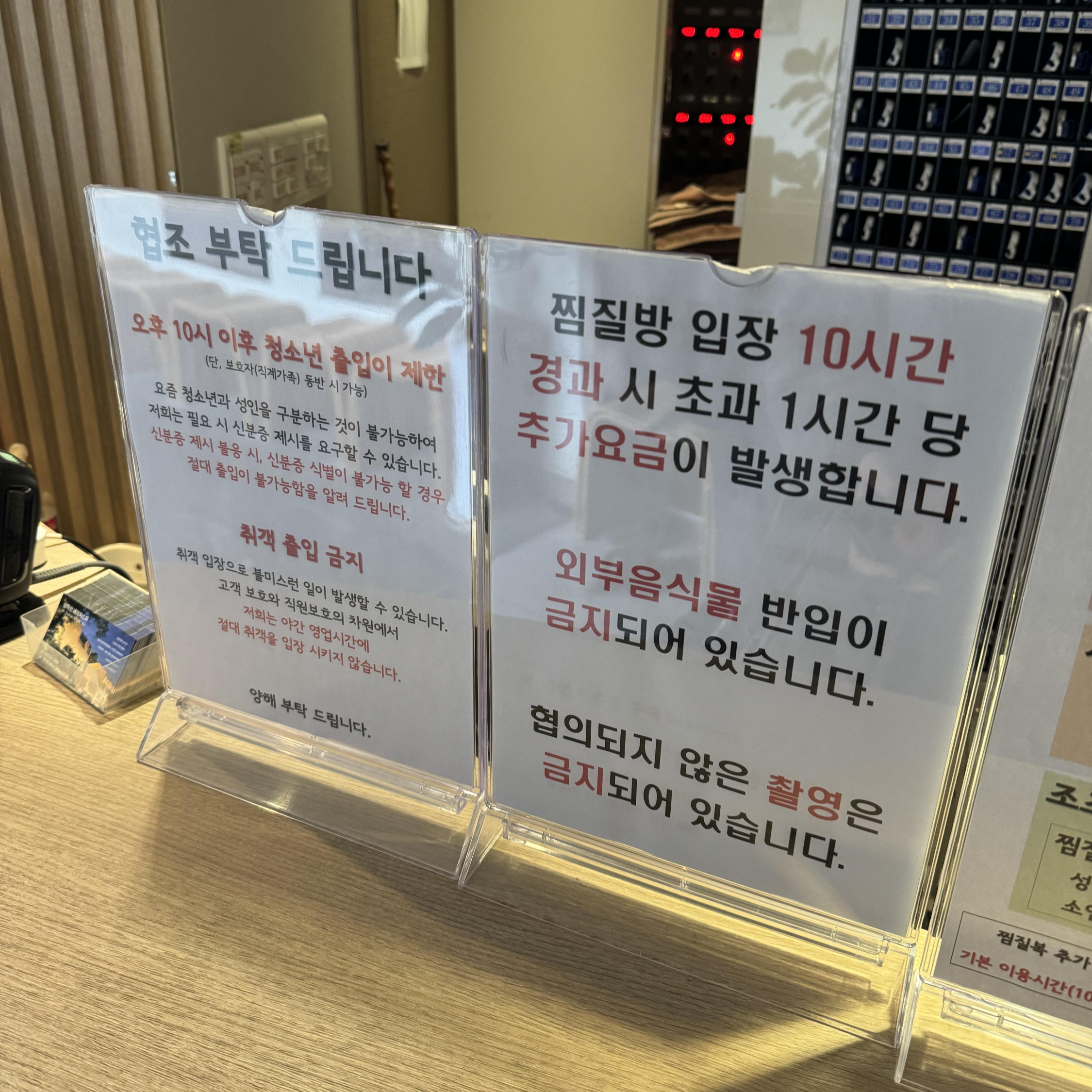 - 찜질방 입장 10시간 경과 시 초과 1시간당 요금 발생