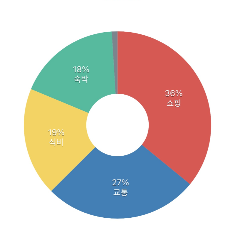 전체 경비 랭킹 3위입니다. 쇼핑을 제외하면 2위에요 ㅎㅎㅎ
